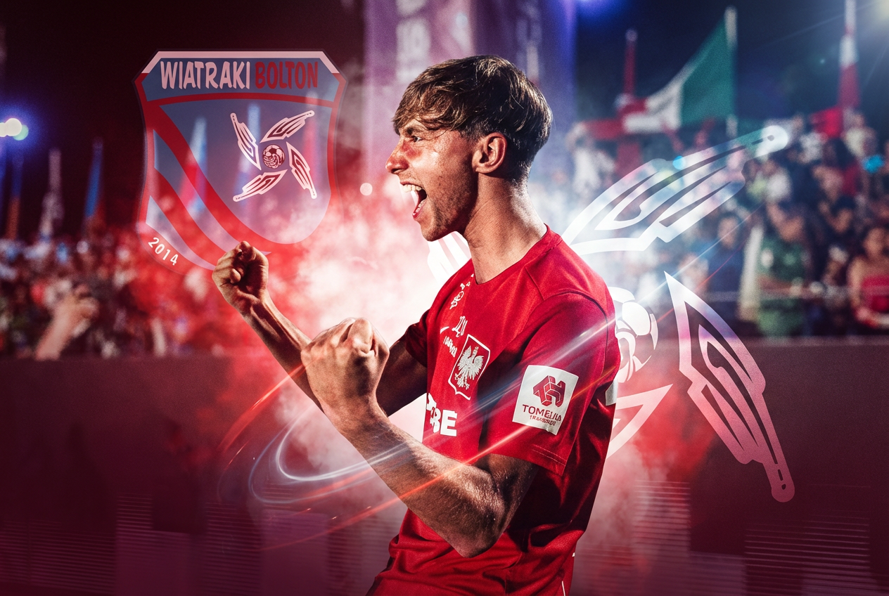 To dla naszej drużyny dzień, który zapisuje się w historii. Hubert Nowacki, zawodnik Wiatraków Bolton, zadebiutował w reprezentacji Polski podczas Mistrzostw Świata Socca 2025 w Meksyku i już przy swoim pierwszym występie sięgnął po złoty medal! 🏆🇵🇱